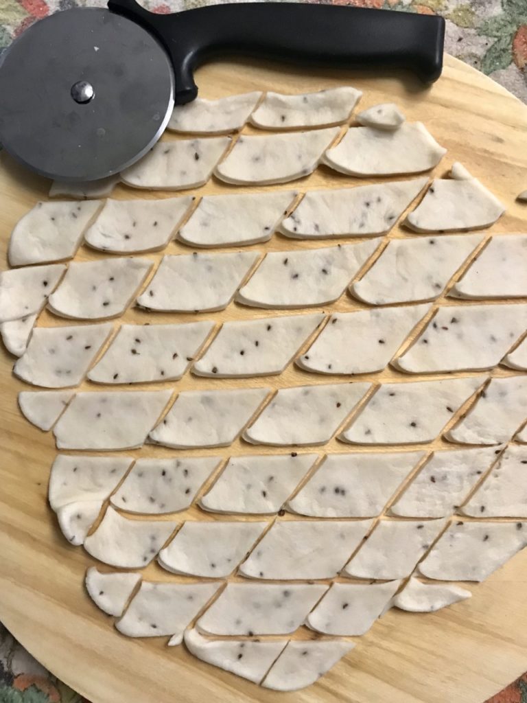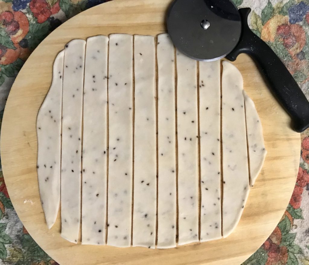 👉 With the help of a knife or a pizza cutter, begin to cut vertically with 1 inch apart straight lines.
