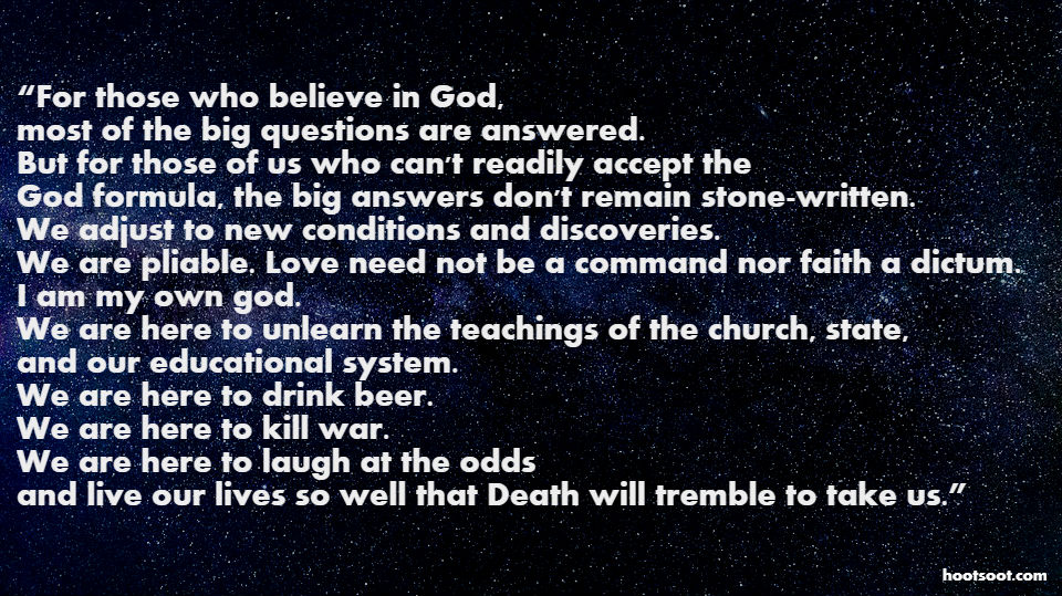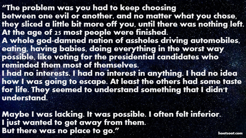 Charles Bukowski is one writer, who perfectly captures the inherent vulnerabilities of human existence, like a true boss. His words are just like the reality of our very wobbly lives – imperfect in some parts and beautiful in some others. Having written books like “Women” and “Love is a Dog from Hell”, Bukowski has been credited with the title of “laureate of American lowlife” by TIME in 1986.