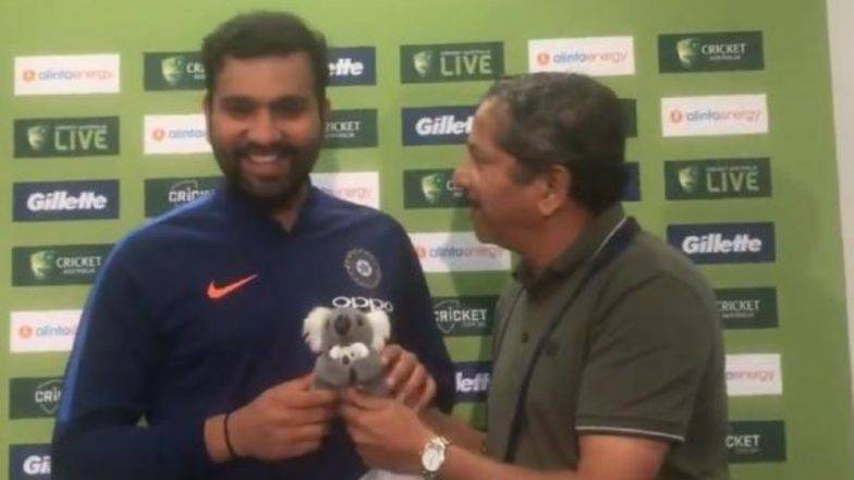 After addressing the press conference ahead of the first game, a senior journalist from Pune surprised Rohit Sharma with a sweet little gift for his daughter. The small soft toy was given to the Indian Cricketer on behalf of all the media persons present there.